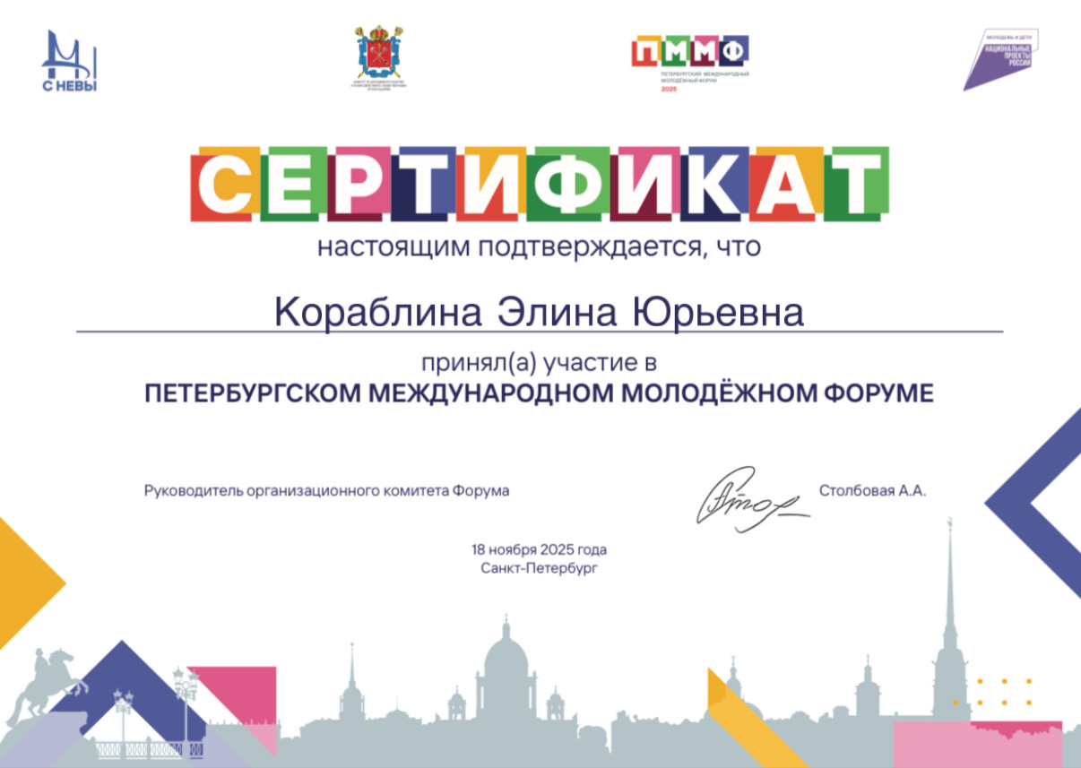 Участнику Открытого выездного форума Студенческого совета Санкт-Петербурга
